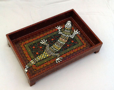 אני עובדת בעיקר עם עץ אורן וצפצפה, ומציירת בעבודת יד בטכניקה משולבת של צריבה בעפרון חשמלי וצבעי אקריליק.